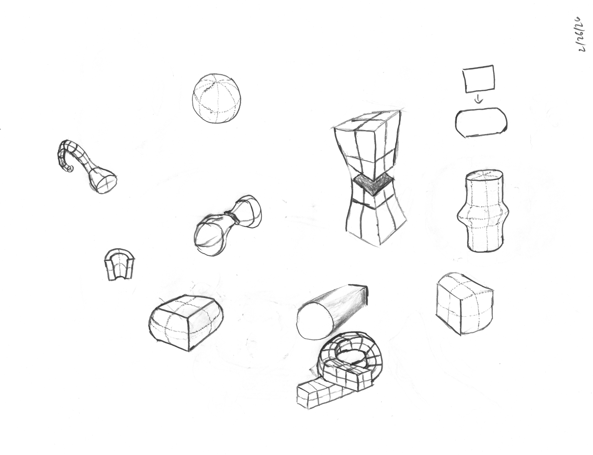 - various forms bent, squashed, stretched, twisted, and cut. I attempted the things that were tough on day 1